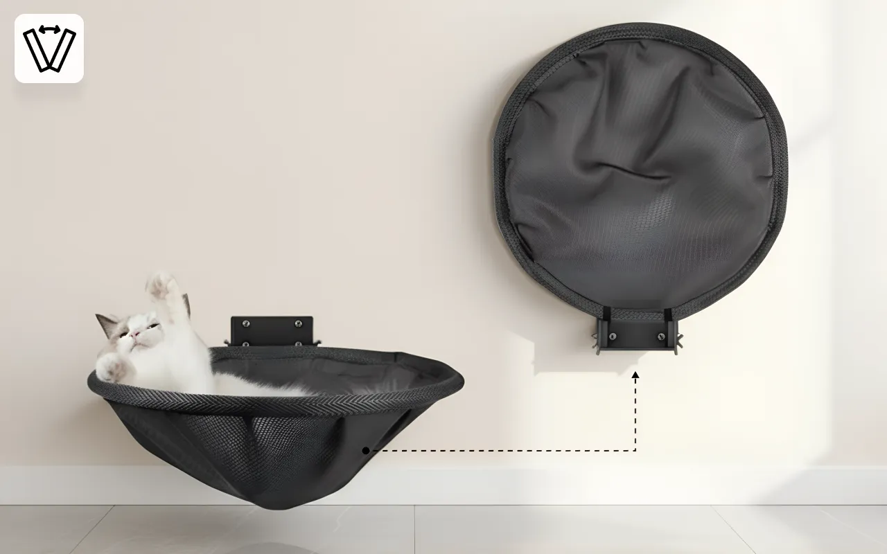 Space in my apartment isn’t huge, but this cat nest fits perfectly on my wall. It keeps the floor clear and adds a cute touch.