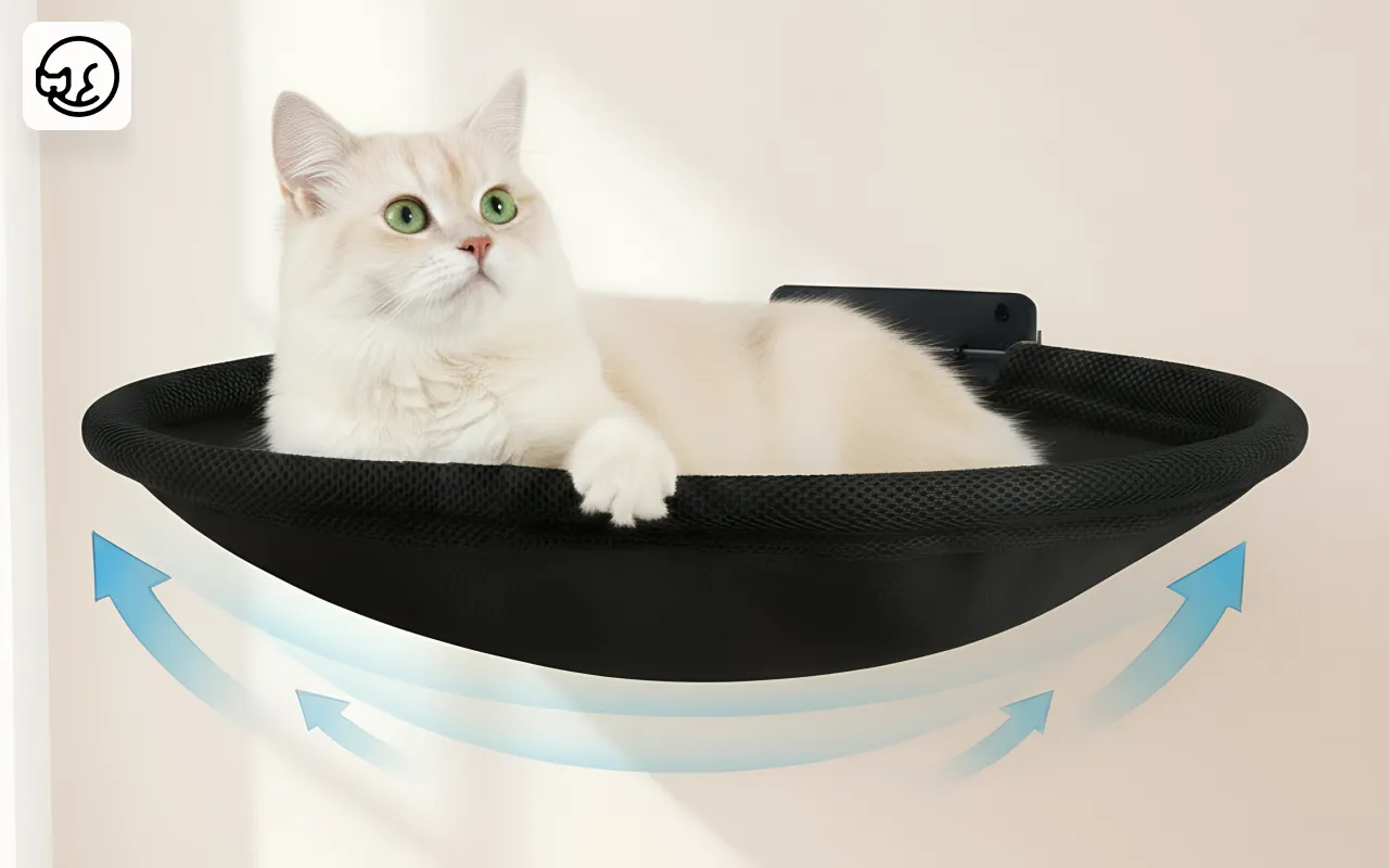 The mesh fabric stays fresh and cool in warm months. Its round nest shape calms anxious pets and helps them rest.