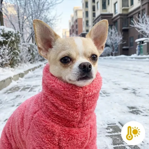 My dog gets cold really fast but these pyjamas fit him snug and let him run around. The high collar is my favorite part for extra warmth.