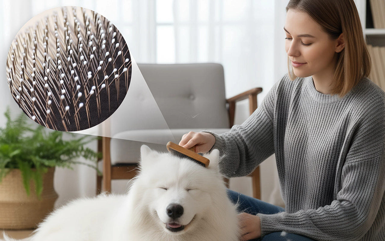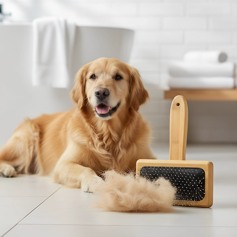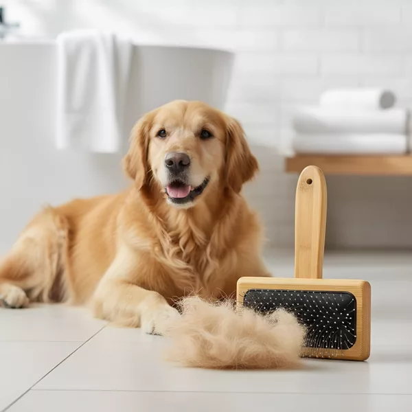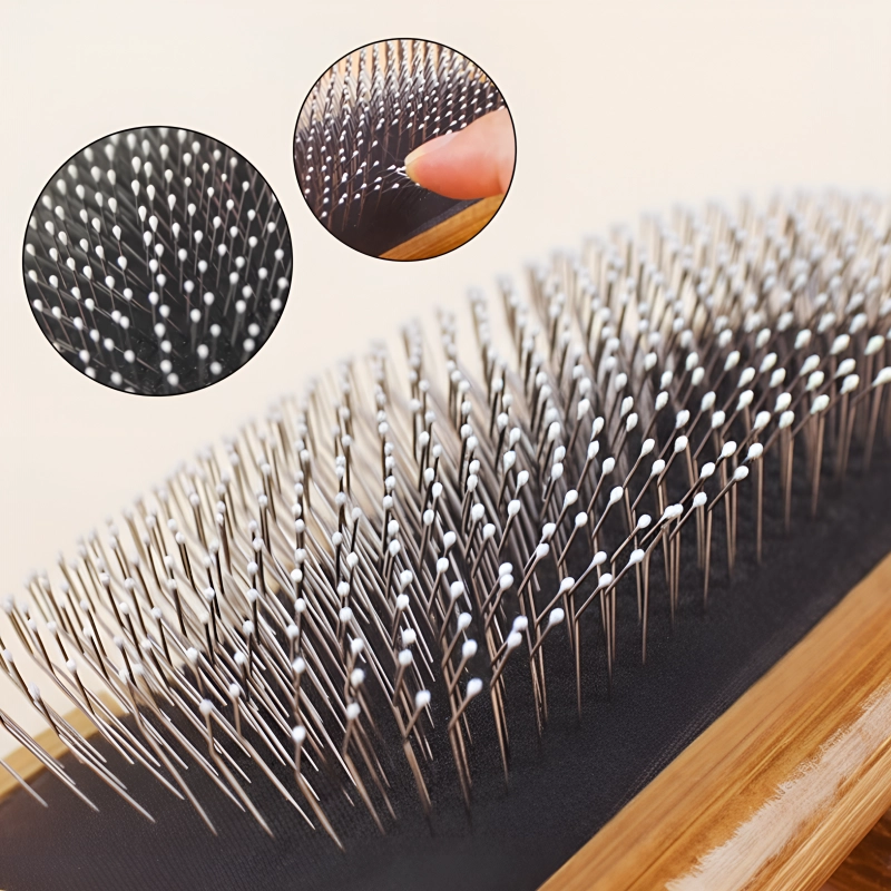 My dog usually hates brushes but this wooden comb makes her wag her tail. The bristles don’t hurt her at all. She looks great after every brush.